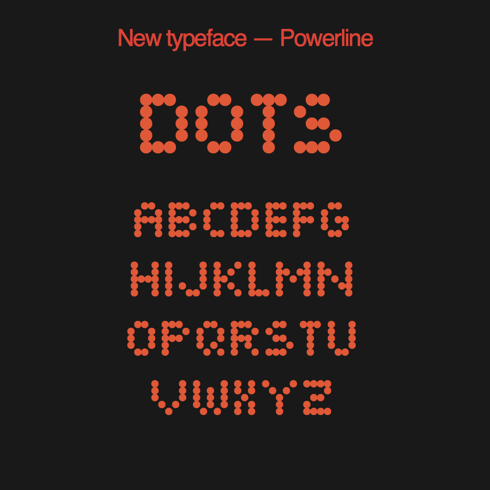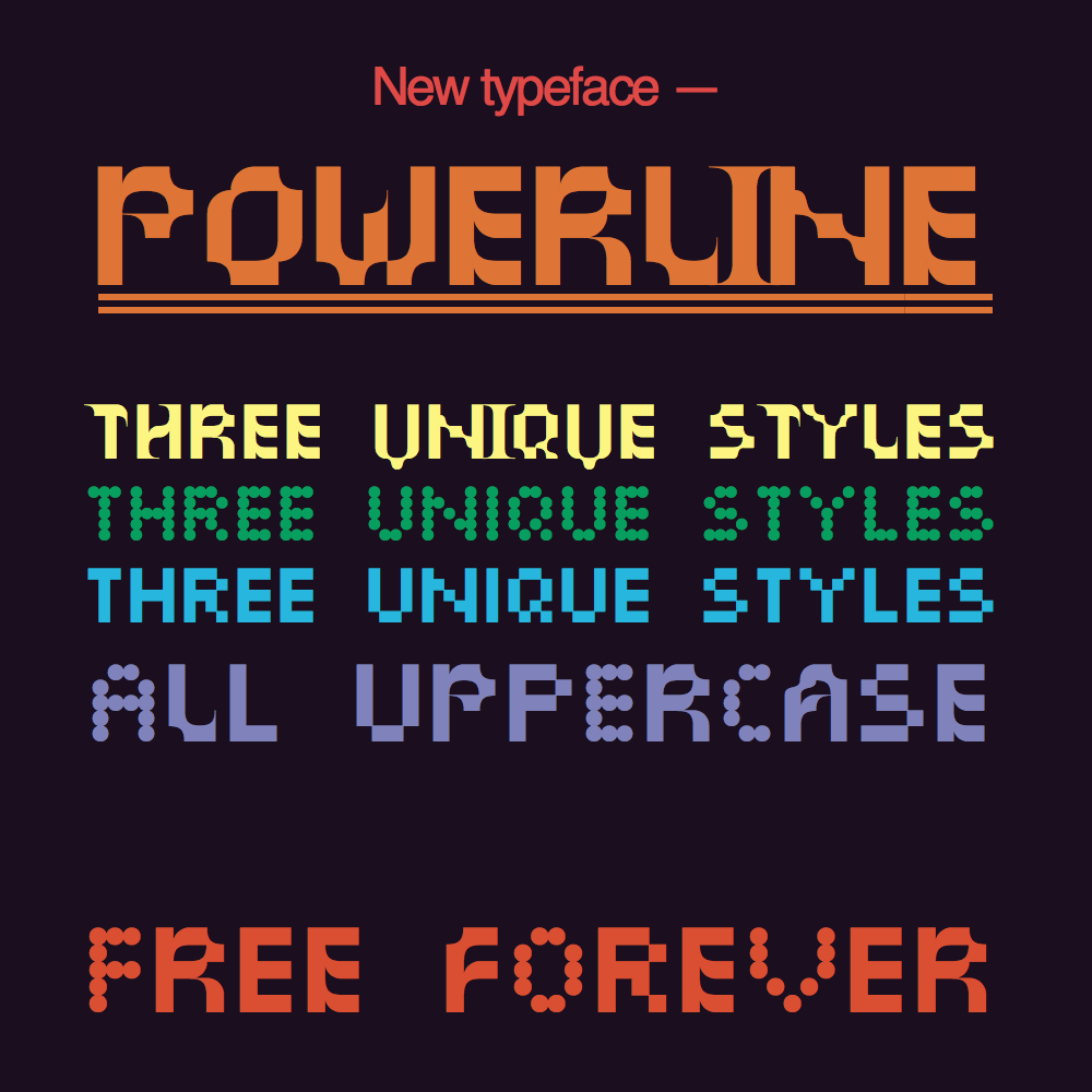 Powerline: a bitmap-esque typeface in three unique styles. Powerline Blade, Dots, and Bitmap are available for free. It was built on a grid system.